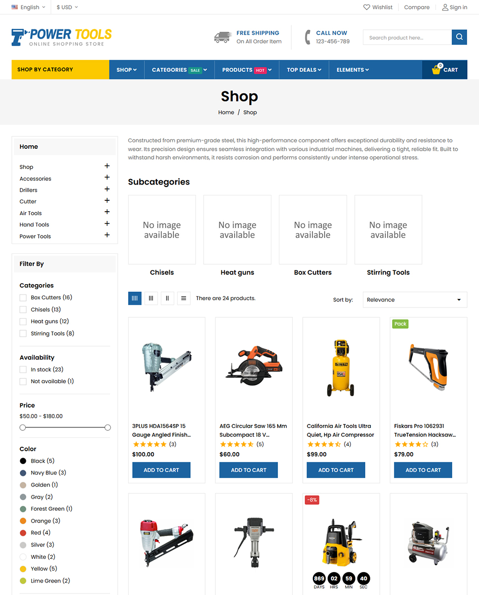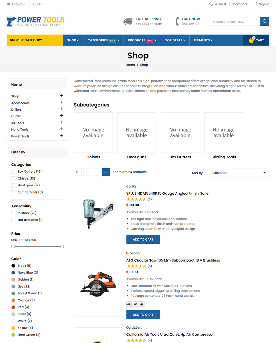 PowerTools includes a Quickstart Installation Package, allowing you to set up your store quickly with demo content. To enhance the shopping experience, the theme is packed with AJAX-powered features such as live search, advanced product filters, quick view, wishlist, compare, and seamless add-to-cart functionality. A Child Theme is included for safe customization and easy future updates.