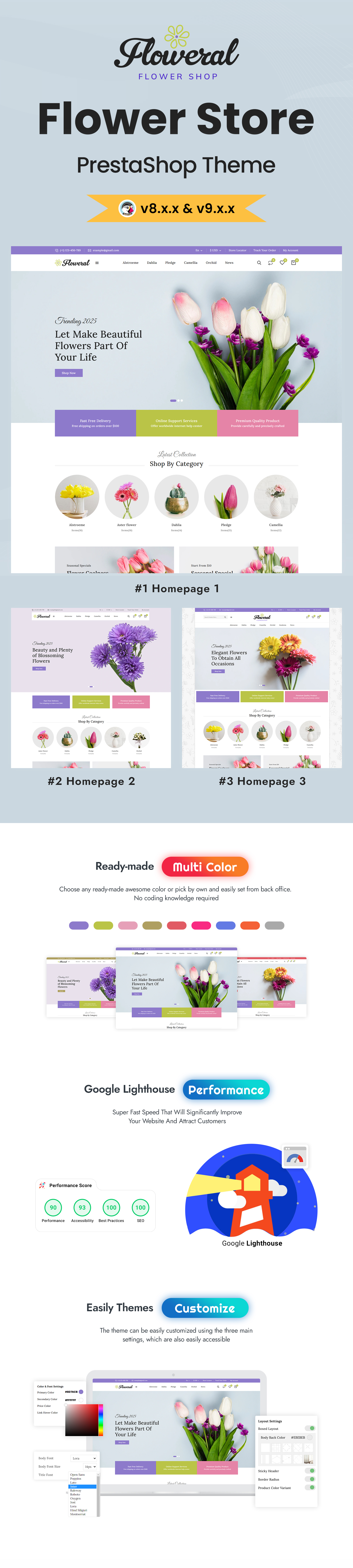 Flowers, gifts, and other related e-stores were the focus of the creation of the Floweral PrestaShop theme. Additionally, the theme's appealing layouts make it simple to present your products. The theme has cutting-edge features like product comparisons, a wishlist, fantastic hover effects, drop-down cart options, a newsletter form, and many others that can quickly enhance the store's conversion rates! The theme is well-structured, with a lengthy category list and a sophisticated search tool to help customers find what they're looking for quickly. A theme's excellent layouts make it ideal for floral studios, plant nurseries, gift shops, and other businesses. Purchase the Floweral and open your store right away!