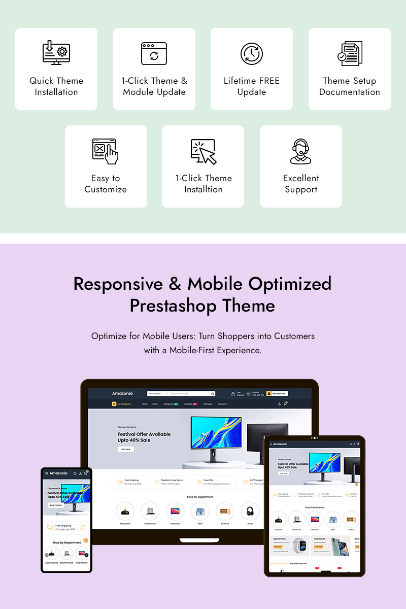 Amazonia – Mega Store and Electronics and Multipurpose PrestaShop Elementor Store is a powerful, modern, and highly scalable eCommerce theme designed for large online stores and multi-category marketplaces. Whether you’re selling electronics, gadgets, fashion, home essentials, or a wide range of products like a mega store, Amazonia gives you the perfect foundation to build a professional and high-performing online business.